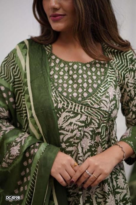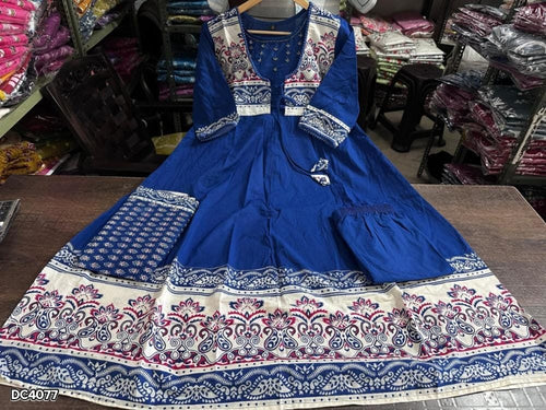 Beautiful Cotton Embroidered Anarkali Kurta Pant Set with Malmal Dupatta