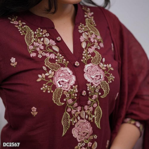 Elegant Cotton Embroidery Kurti Pant Dupatta